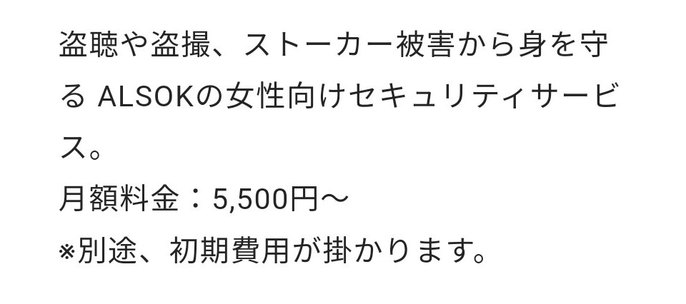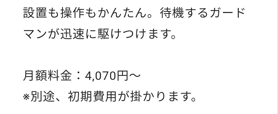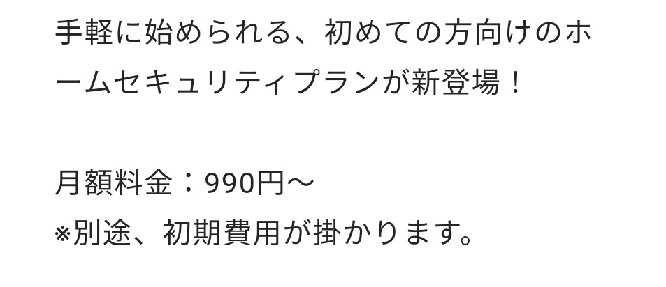 セコムよりも月額料金はすこし高くなるものの、初期費用は19,470円でセコムと比較してもかなりリーズナブルになります。
